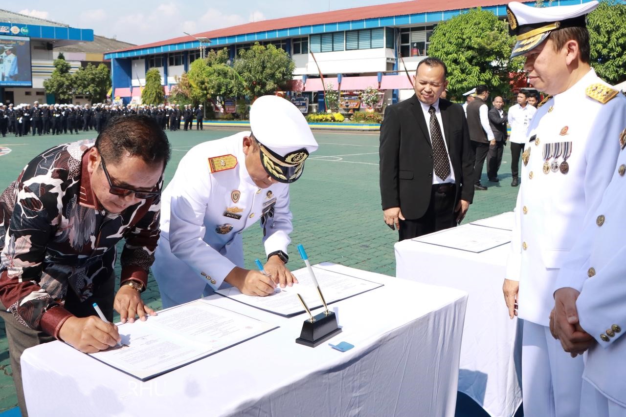 Penandatanganan Memorandum of Understanding (MoU) dan Perjanjian Kerja Sama (PKS) dalam rangka implementasi pola pembibitan taruna Kementerian Perhubungan. (dok. bpsdmp)