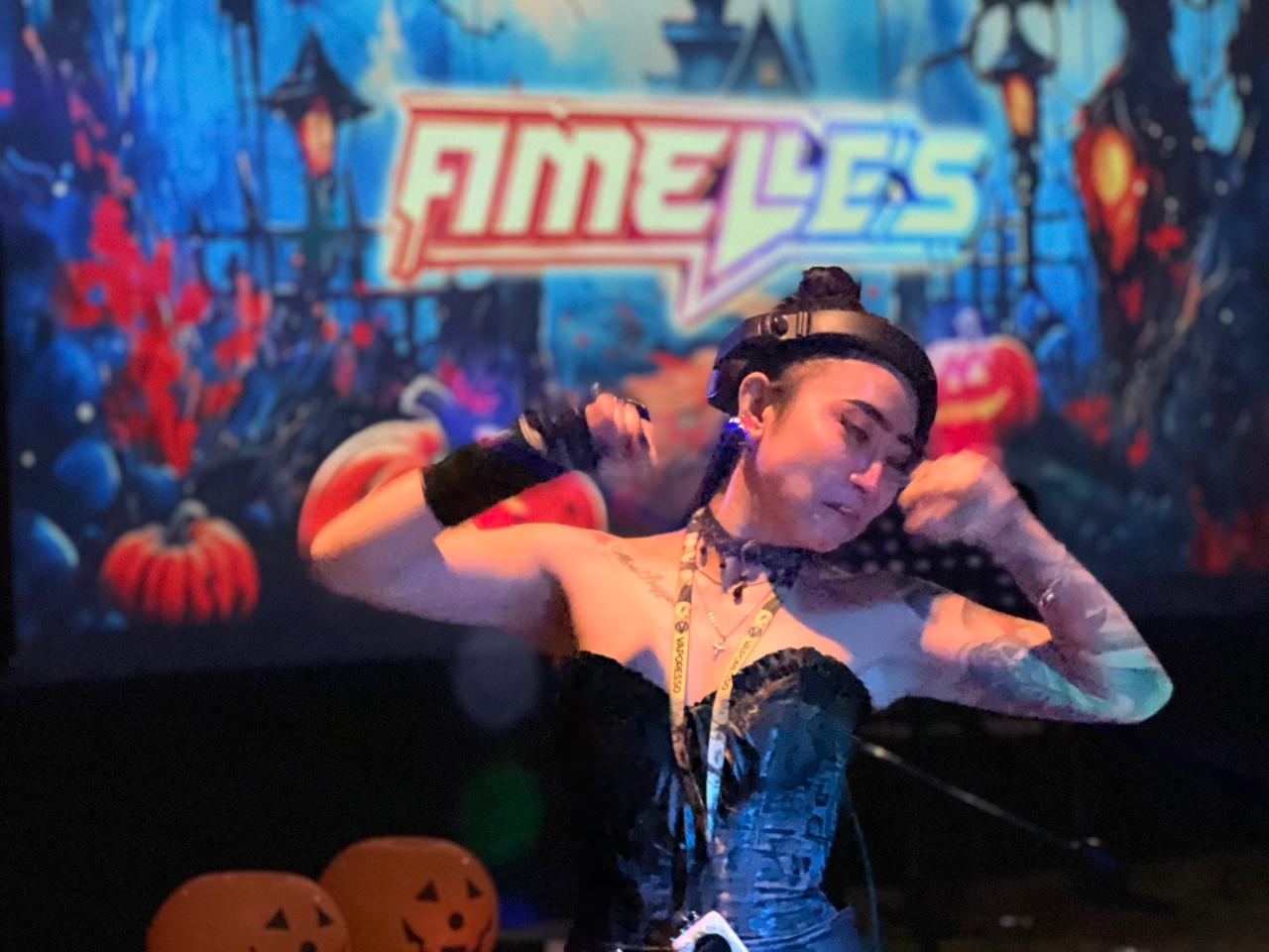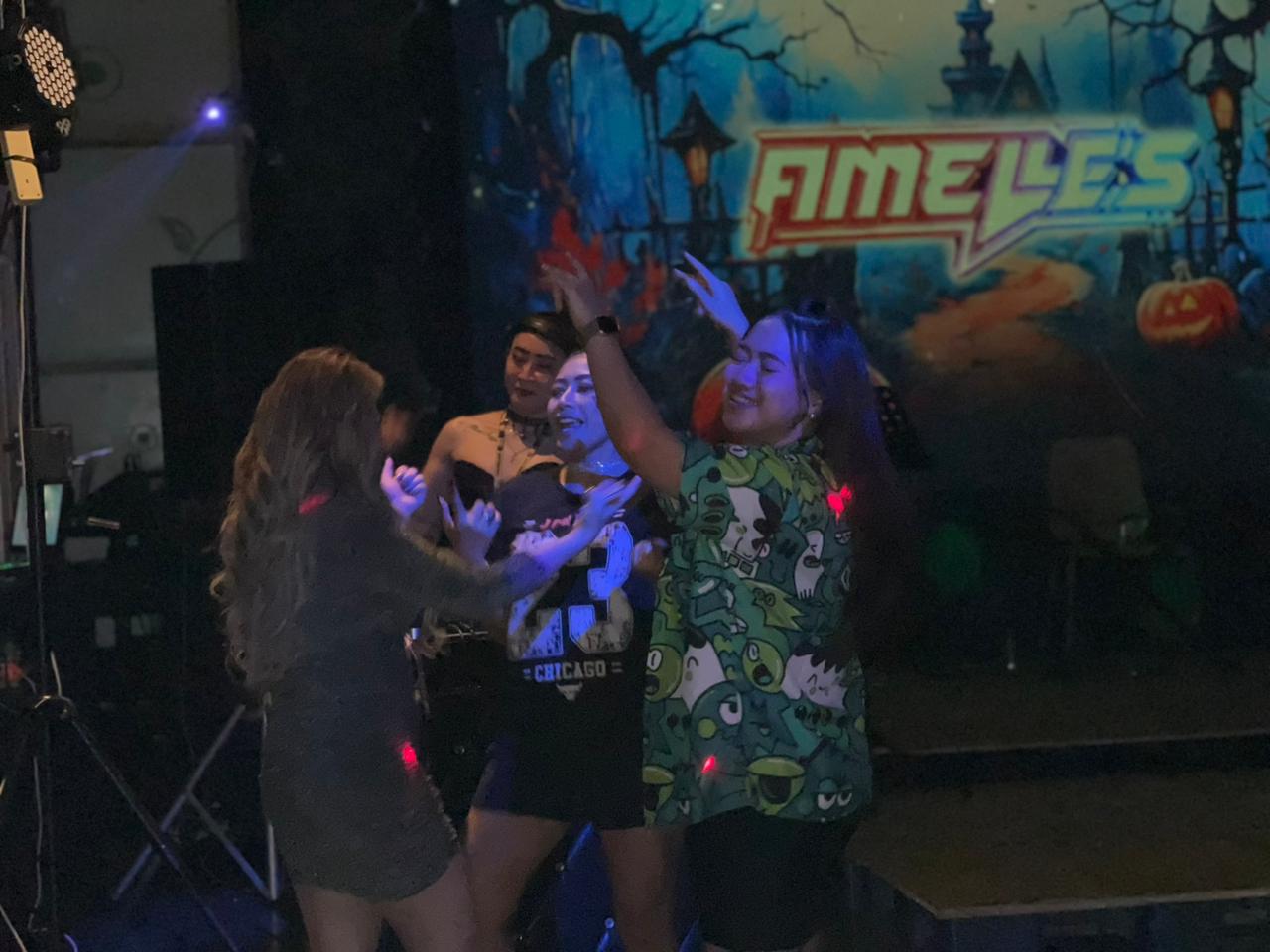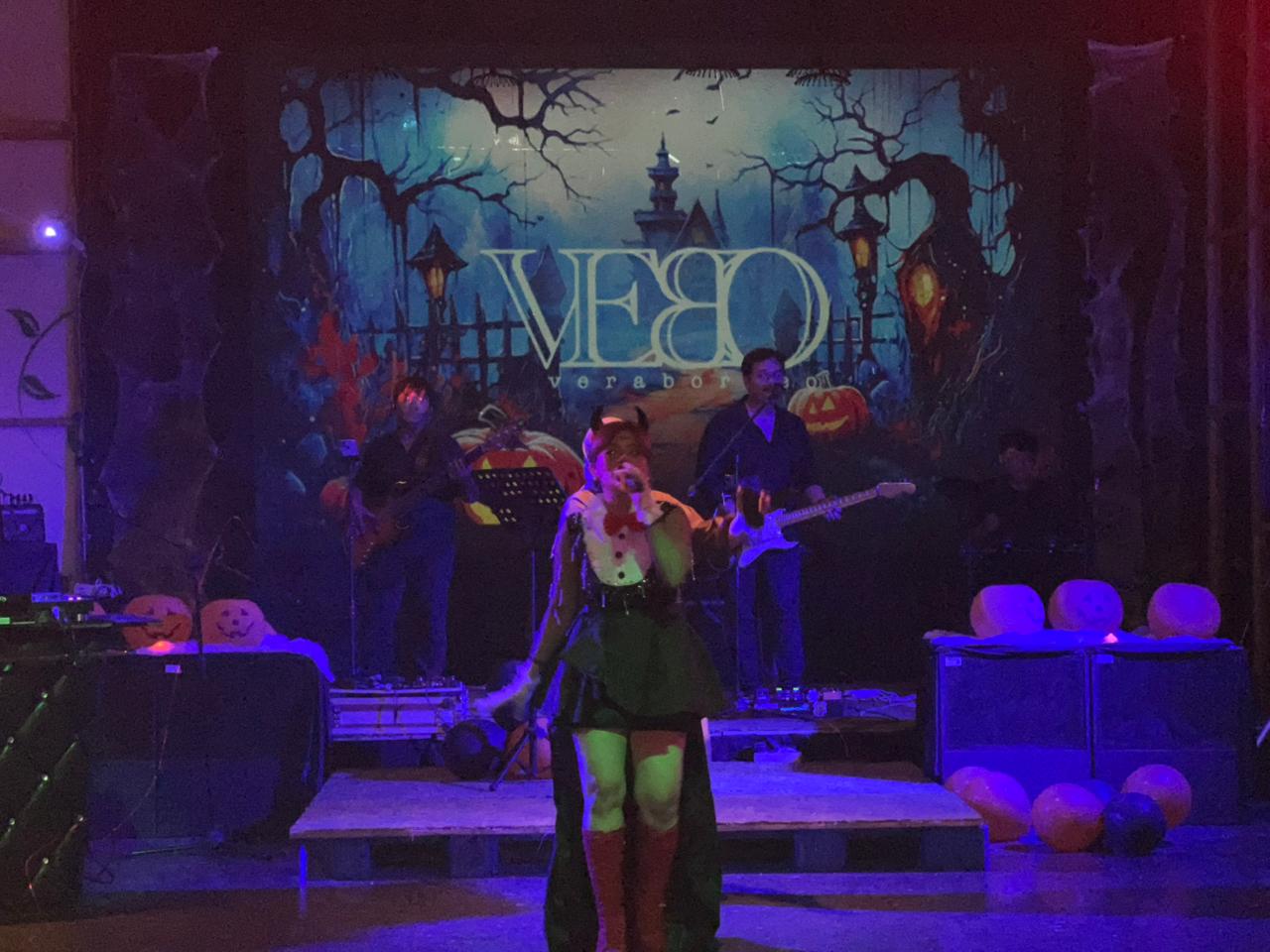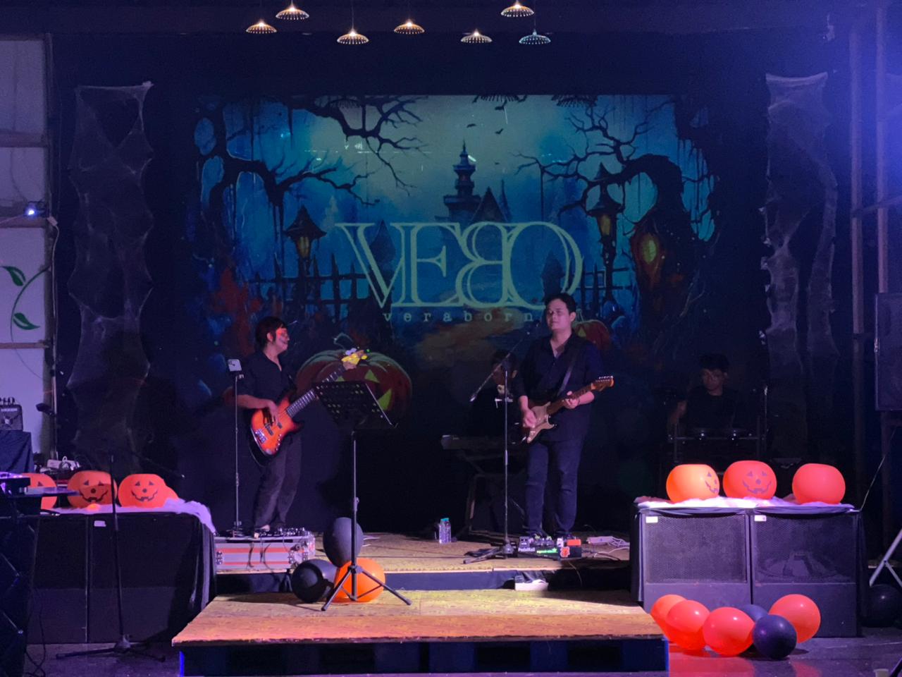 Para tamu menikmati juga dekorasi bernuansa horor khas Halloween dan penampilan musik yang membuat malam semakin hidup.