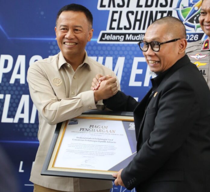 Penghargaan Anugerah Pelayanan Prima Mudik Lebaran ini diterima Direktur Jenderal Perhubungan Darat Aan Suhanan saat kegiatan talkshow, sekaligus pelepasan Tim Ekspedisi Elshinta Jelang Mudik Lebaran 2026 di Kantor NTMC Korlantas Polri, Jakarta pada Jumat (6/3/2026).