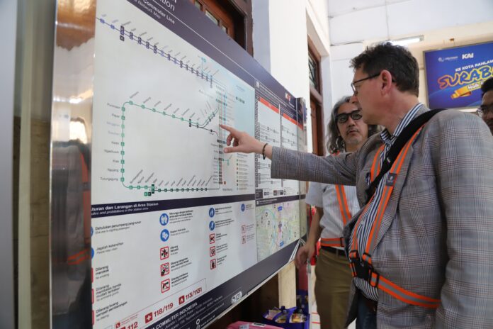 Tim dari Bank Pembangunan Jerman (Kreditanstalt für Wiederaufbau/KfW) bersama dengan Direktorat Jenderal Perkeretaapian (DJKA) melalui Balai Teknik Perkeretaapian (BTP) Kelas I Surabaya DJKA dan PT KAI Daop 8 Surabaya mengunjungi beberapa lokasi yang akan menjadi bagian pembangunan Surabaya Regional Railway Line (SRRL).