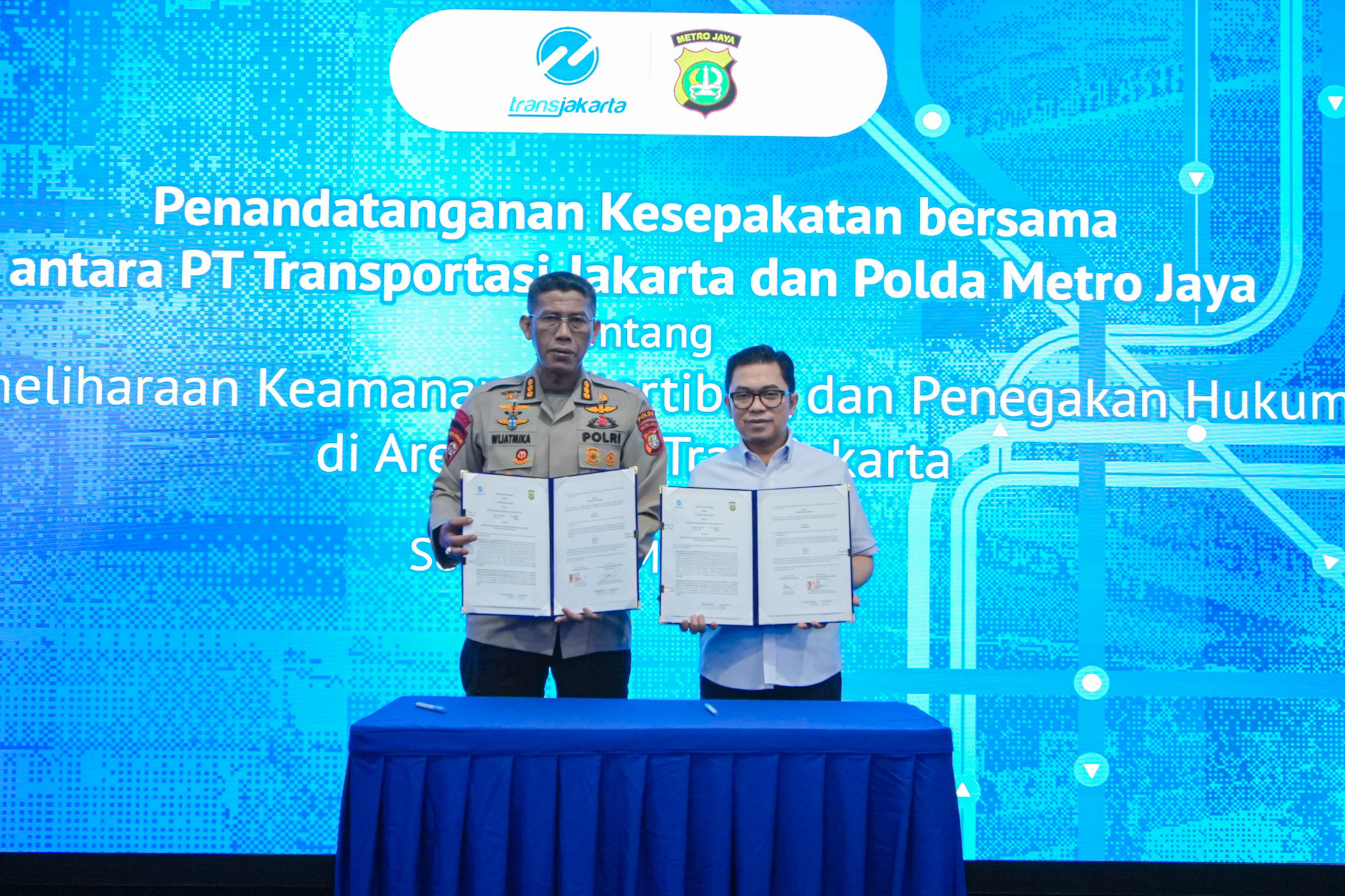 Penandatanganan dilakukan langsung oleh Direktur Utama Transjakarta, Welfizon Yuza dan Kepala Biro Operasi Polda Metro Jaya, Kombes Pol. I Gede Ketut Wijatmika.